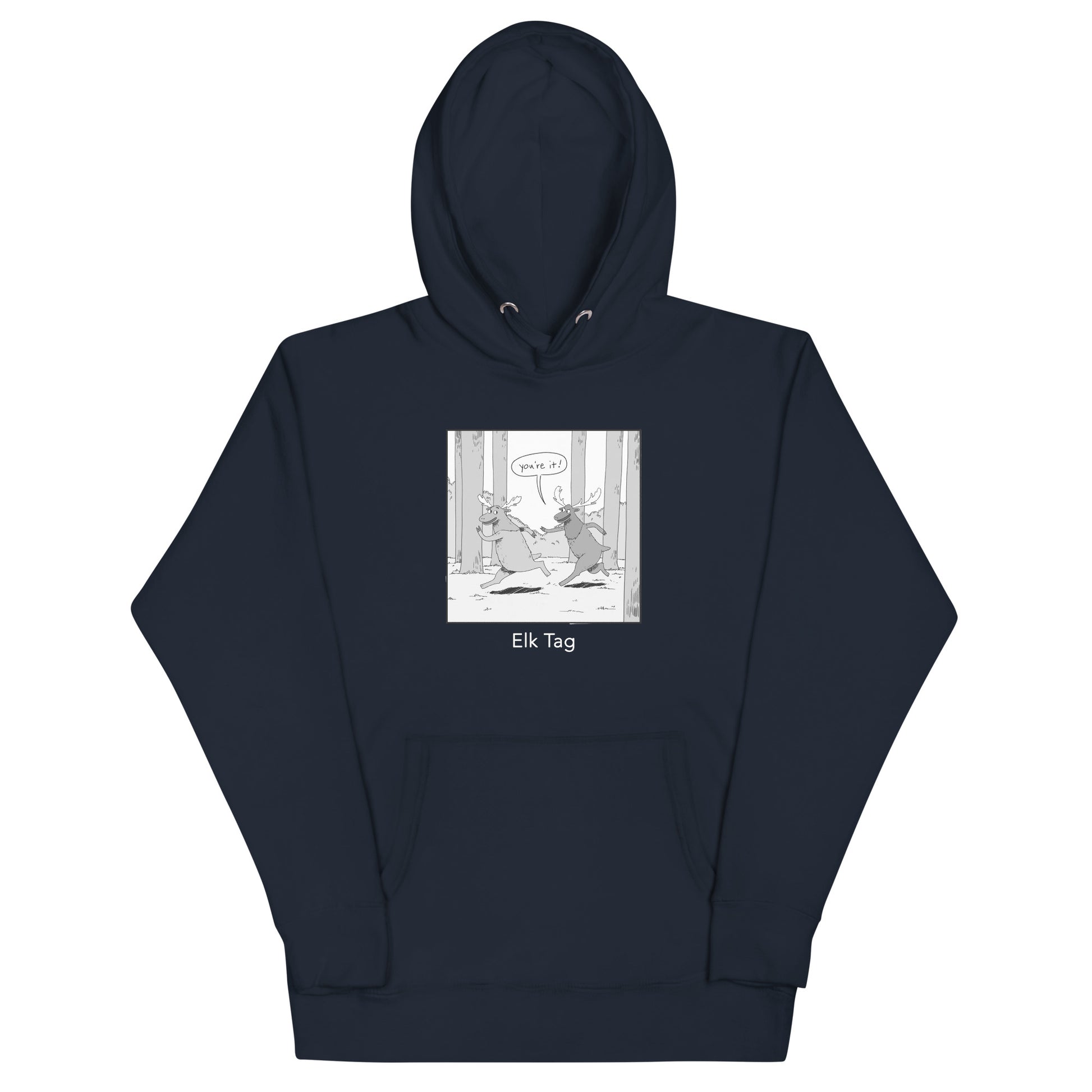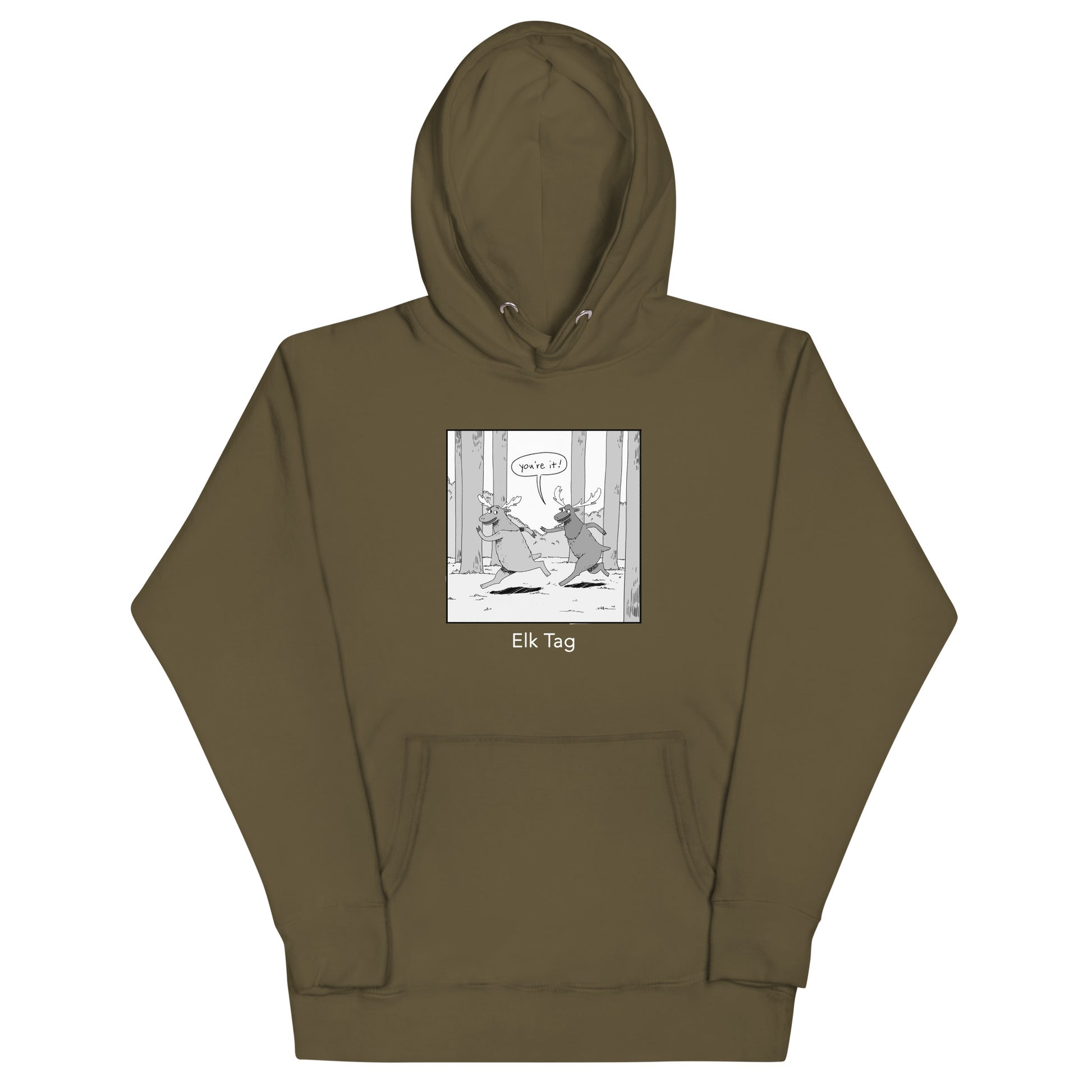 For all the outdoorsy humans in the world, this super funtastic hoodie featuring frolicking elk having a dang good time. It's comfy. It's stylish. It's funny. It's a conversation starter!